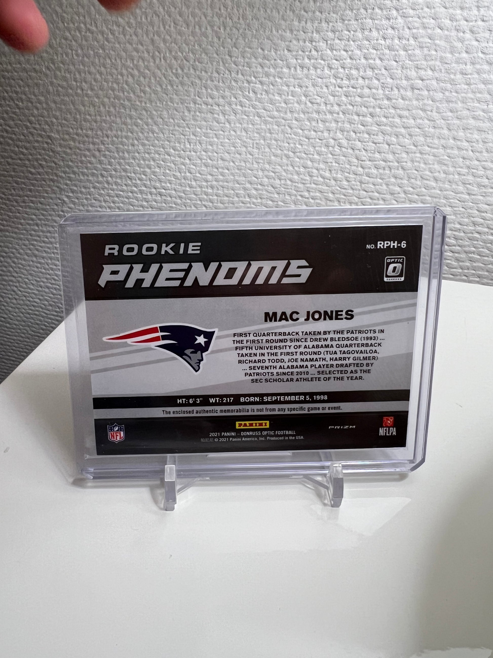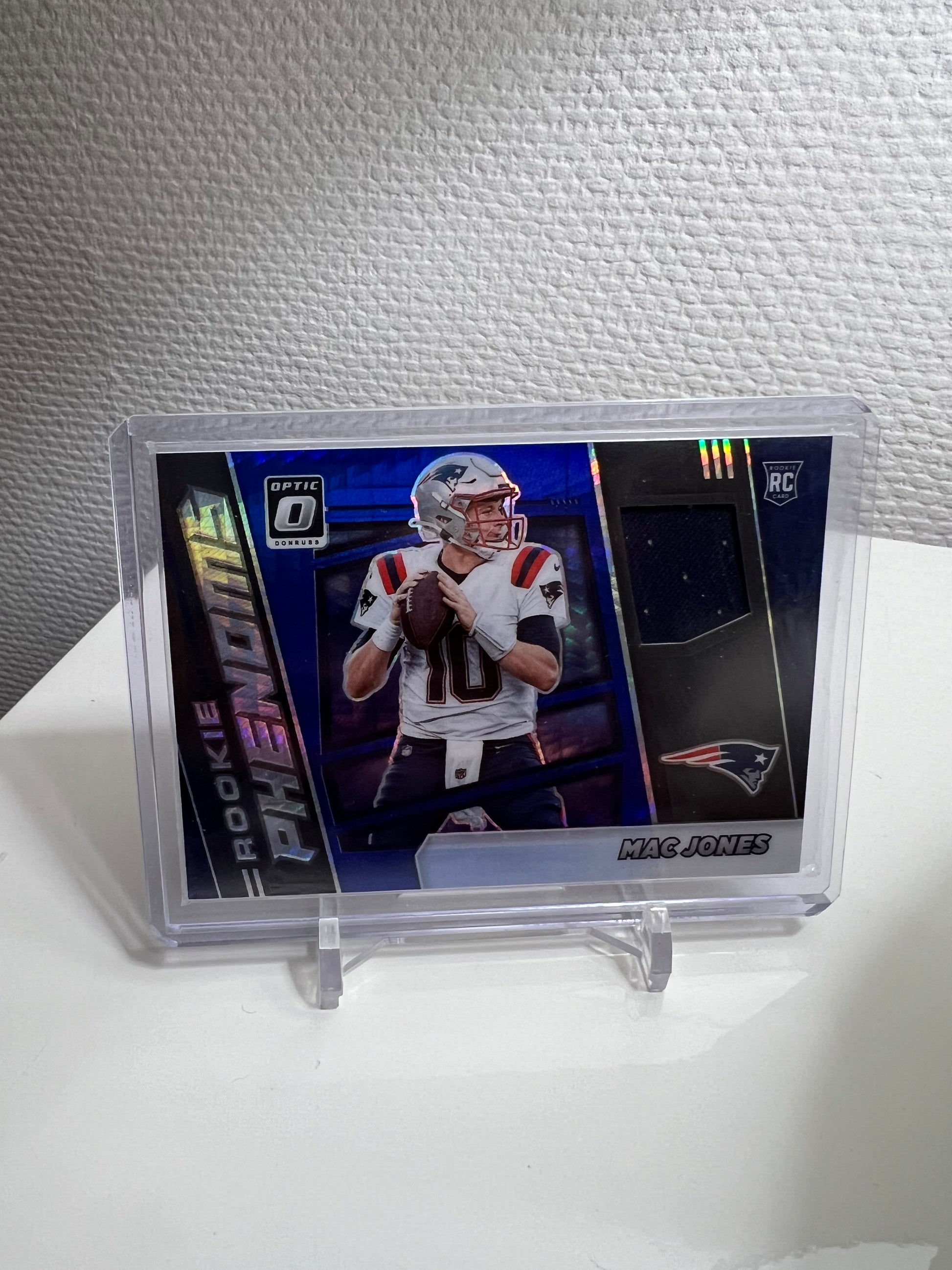 Donruss Optic 21 - Mac Jones Rookie Phenoms Hyper Blue Prizm Jersey - New England Patriots #RPH-6