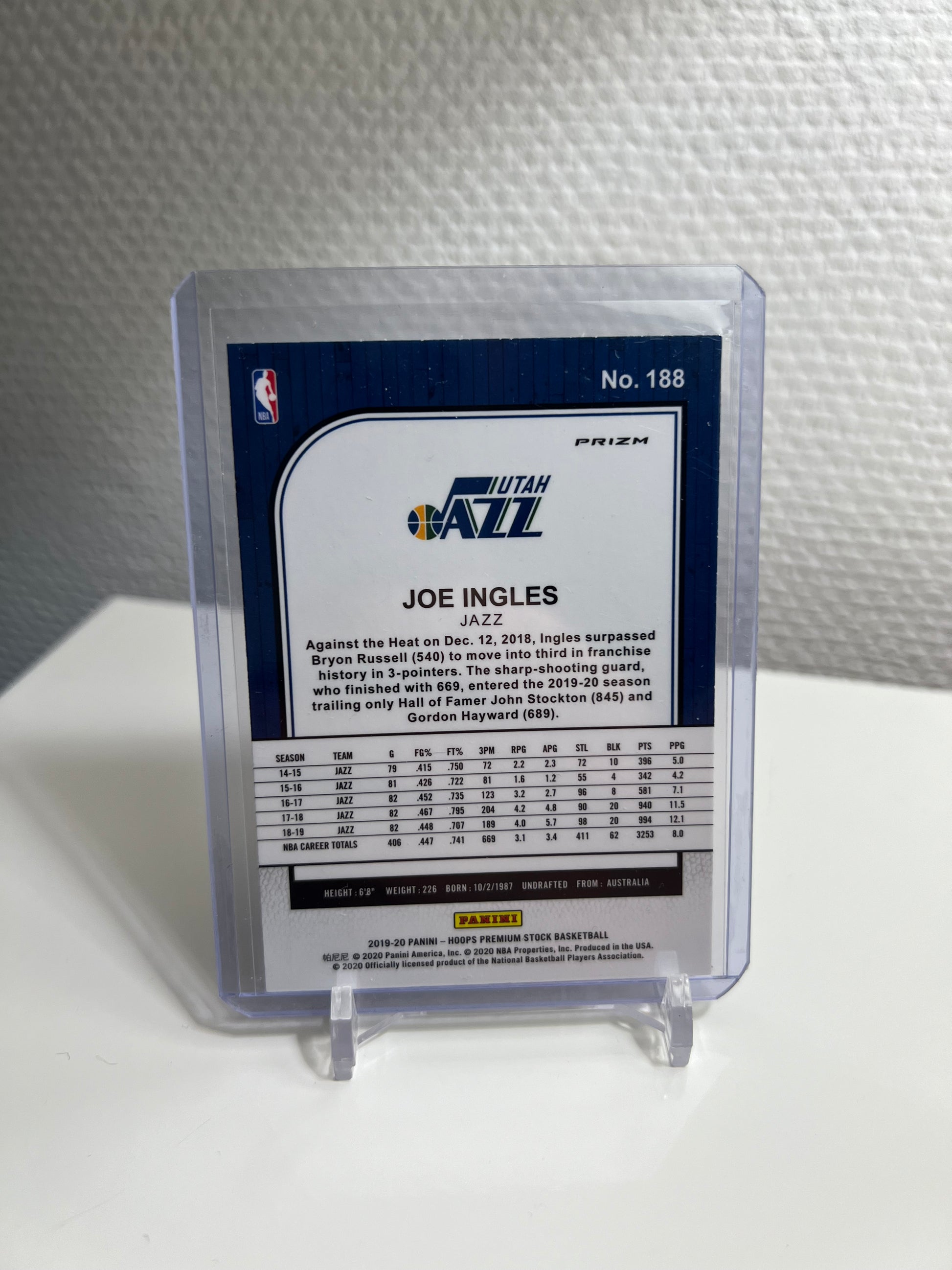 Hoops Premium Stock 19-20 - Joe Ingles Silver Prizm - Utah Jazz