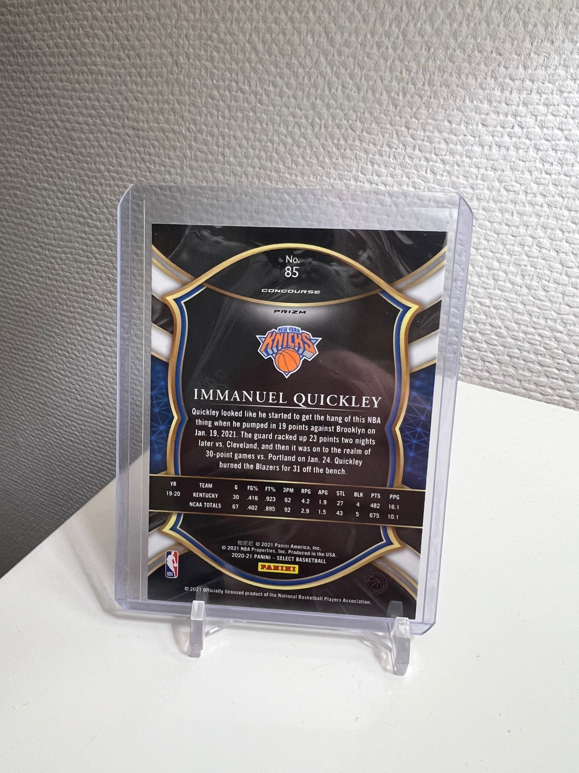 Select 20-21 - Immanuel Quickley Tri-Color Prizm RC Card - New York Knicks