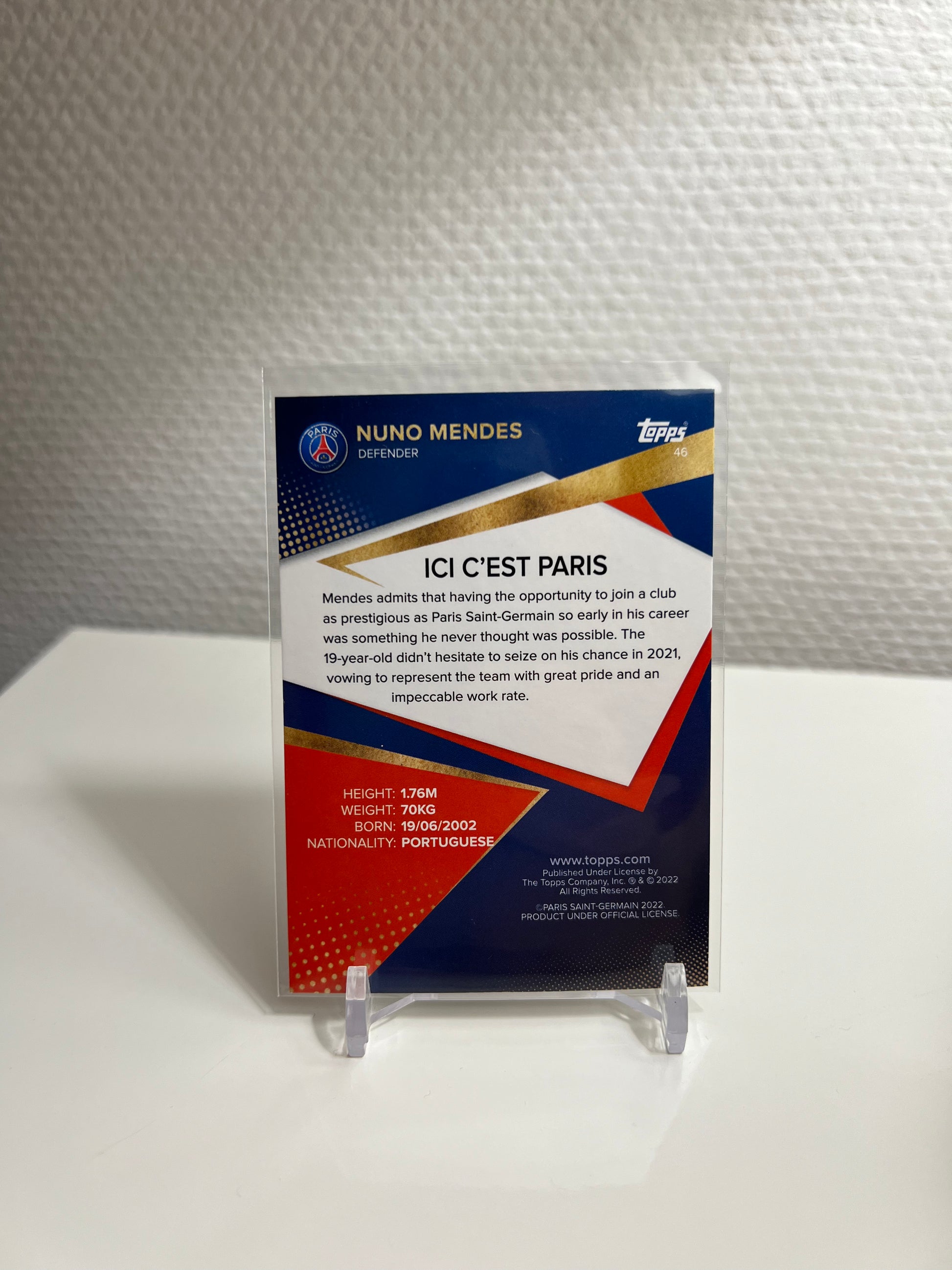 Team-Set 21-22 - Nuno Mendes Ici C´est Paris RC Card - Paris Saint-Germain